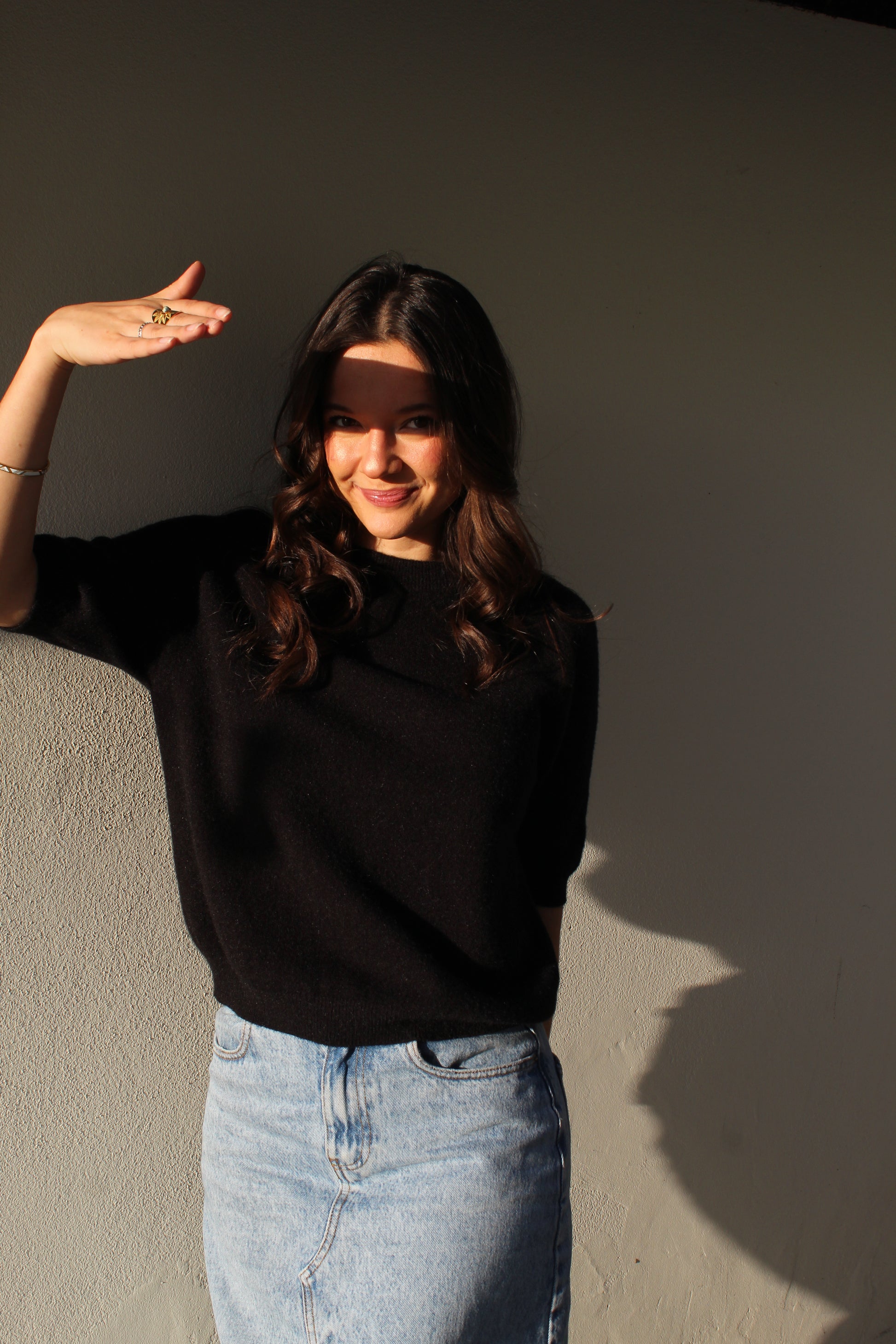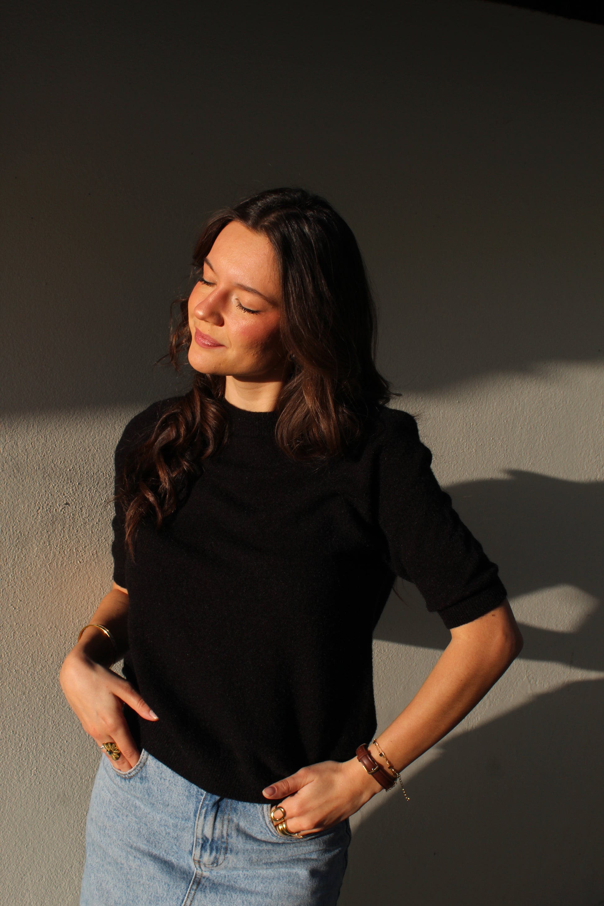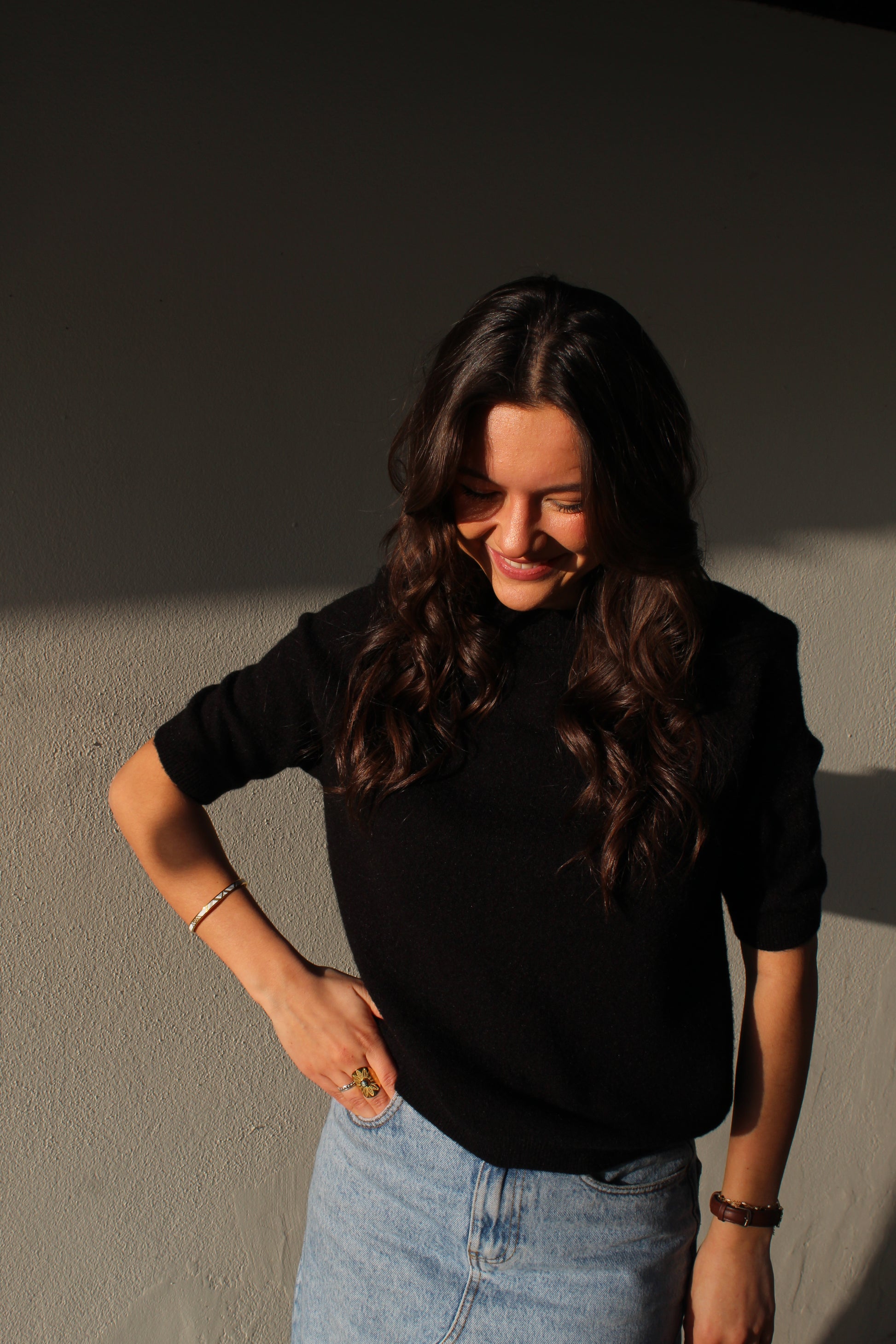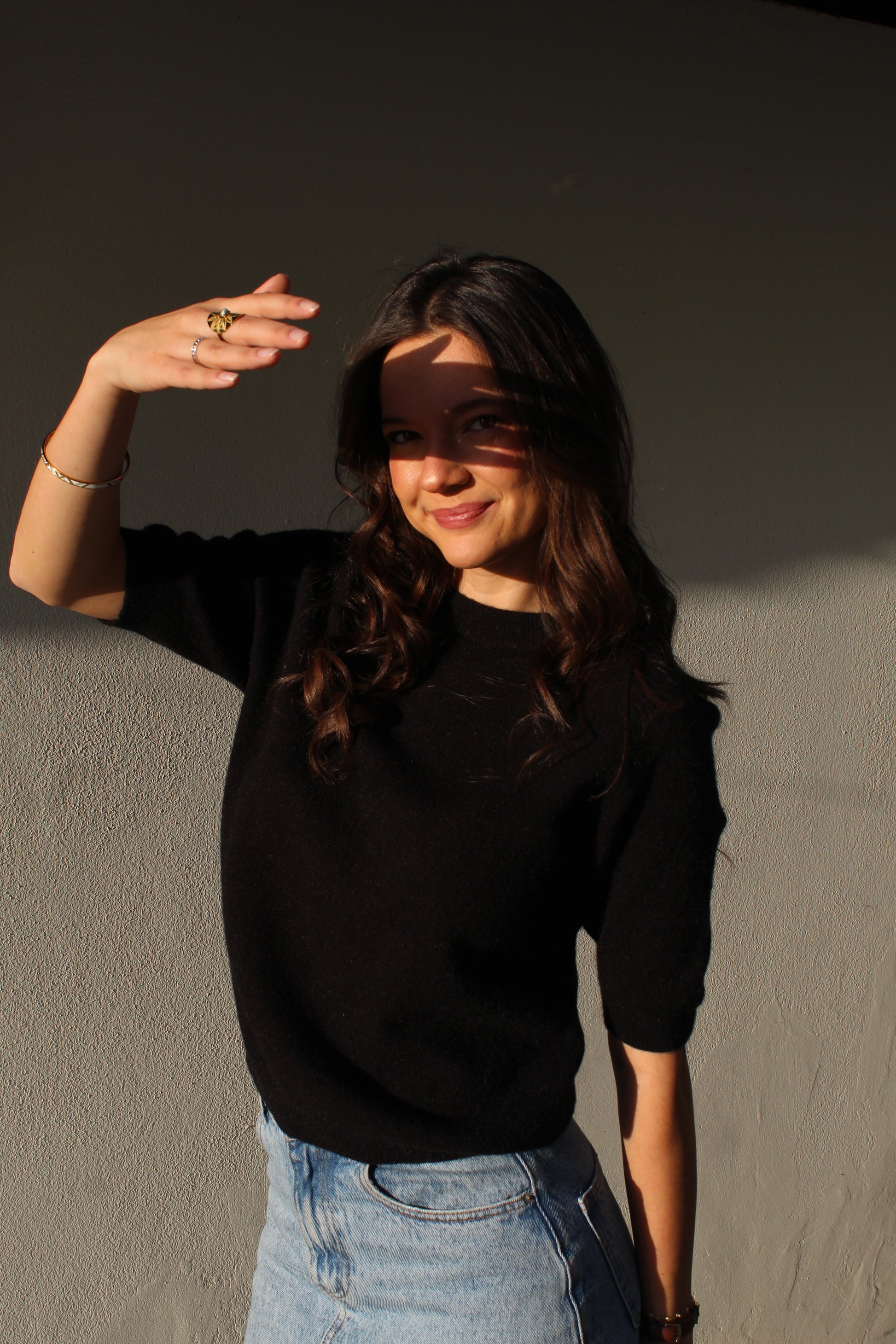 Ce pull manches courtes allie douceur et confort grâce à son mélange de polyamide, acrylique et polyester. Sa coupe flatteuse et sa matière légère en font la pièce parfaite pour le printemps, à porter seule ou superposée selon vos envies.