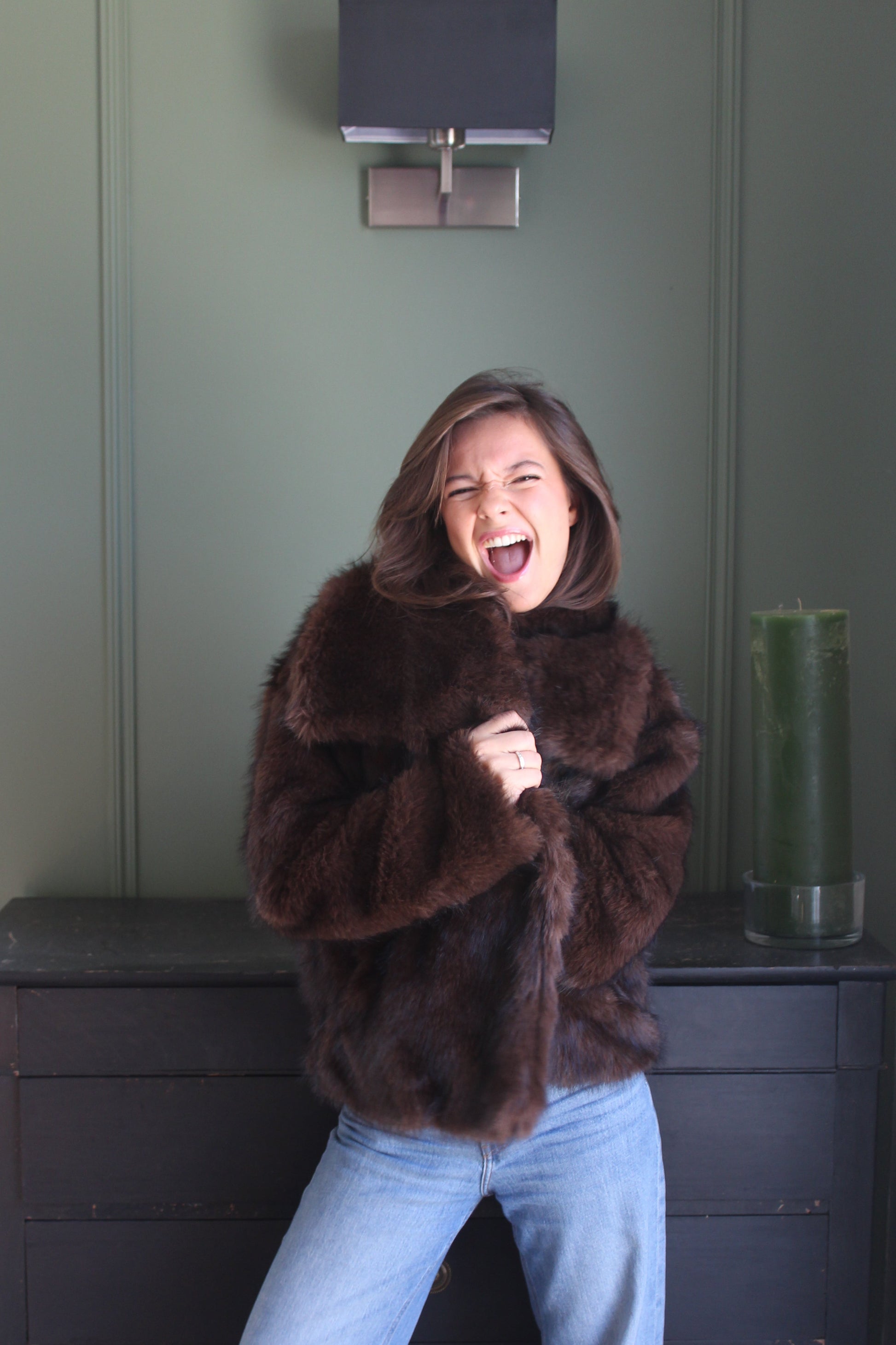 Veste en fausse fourrure marron foncé élégance et douceur !