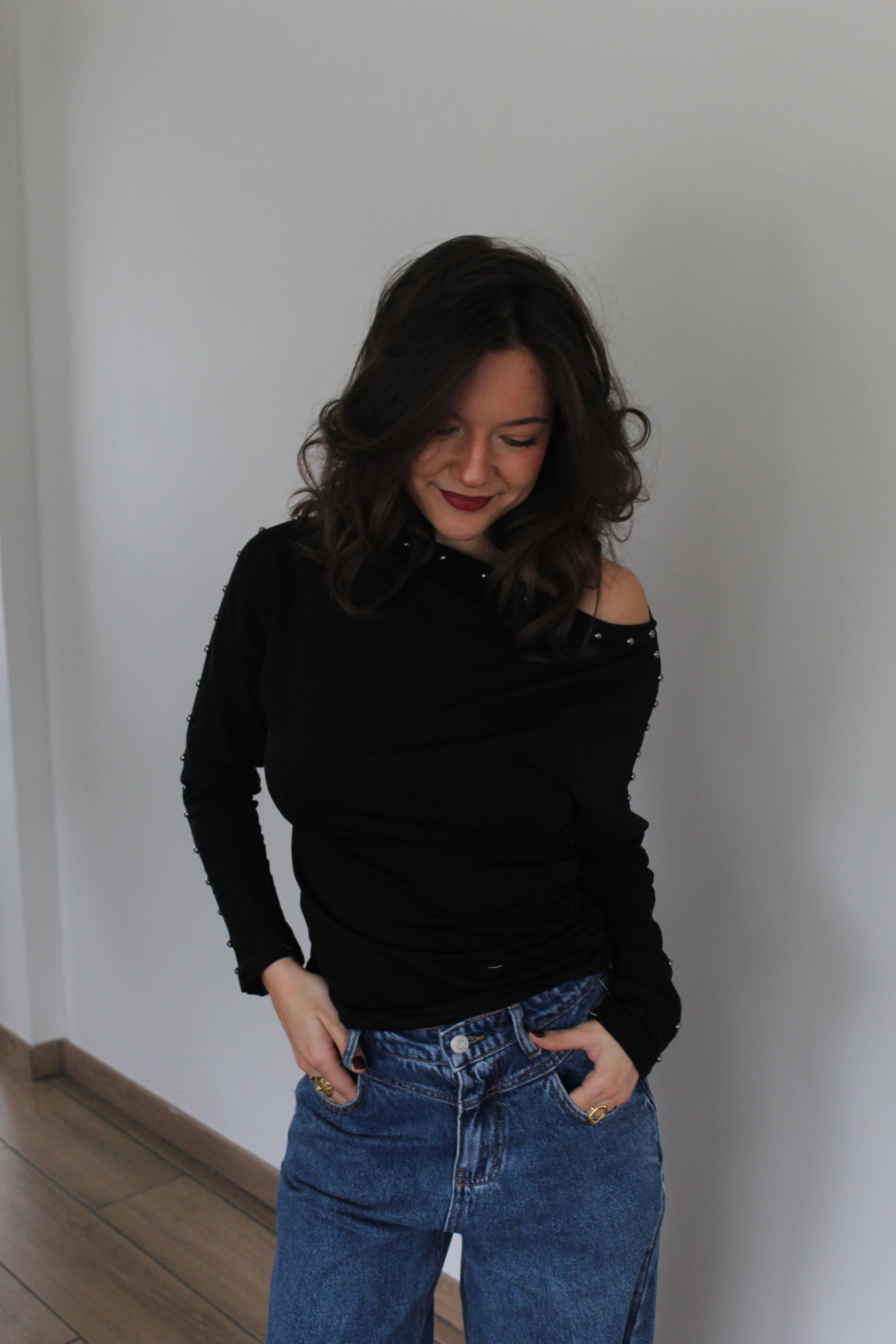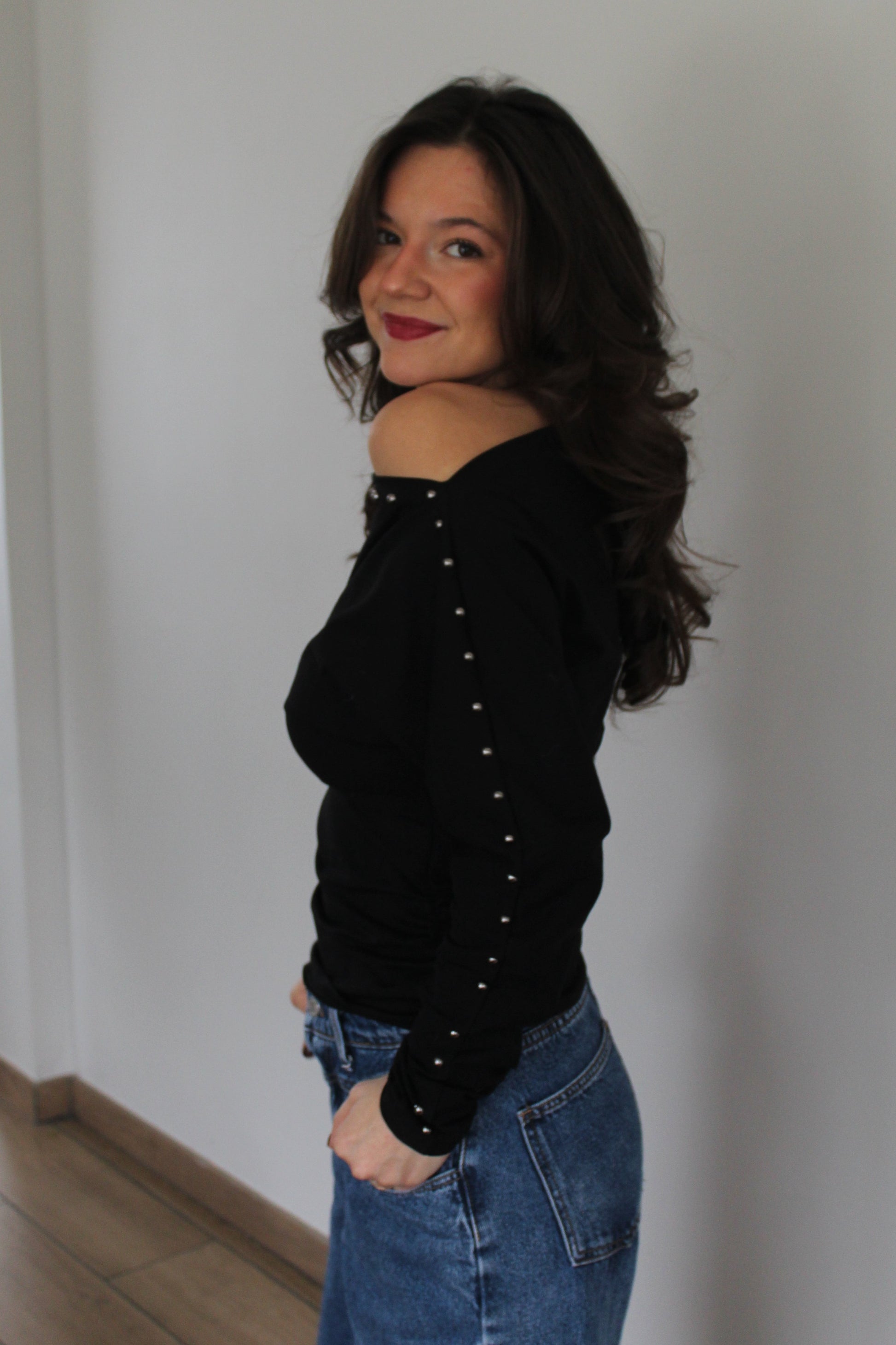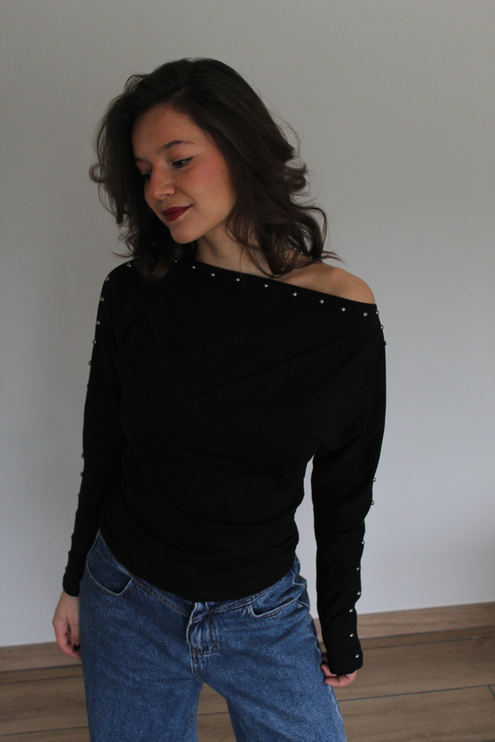 Top clouté manches longues. Coton stretch italien !