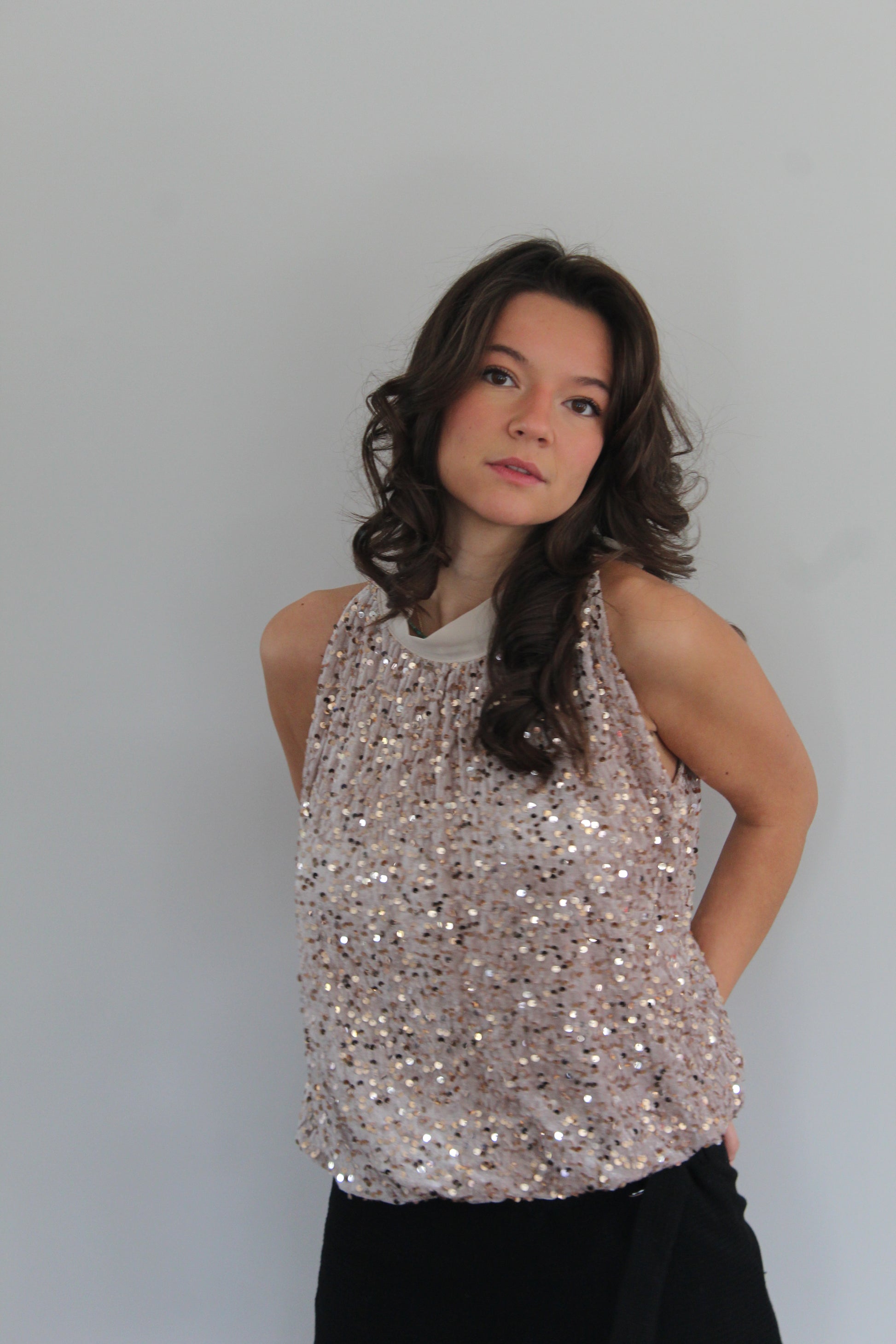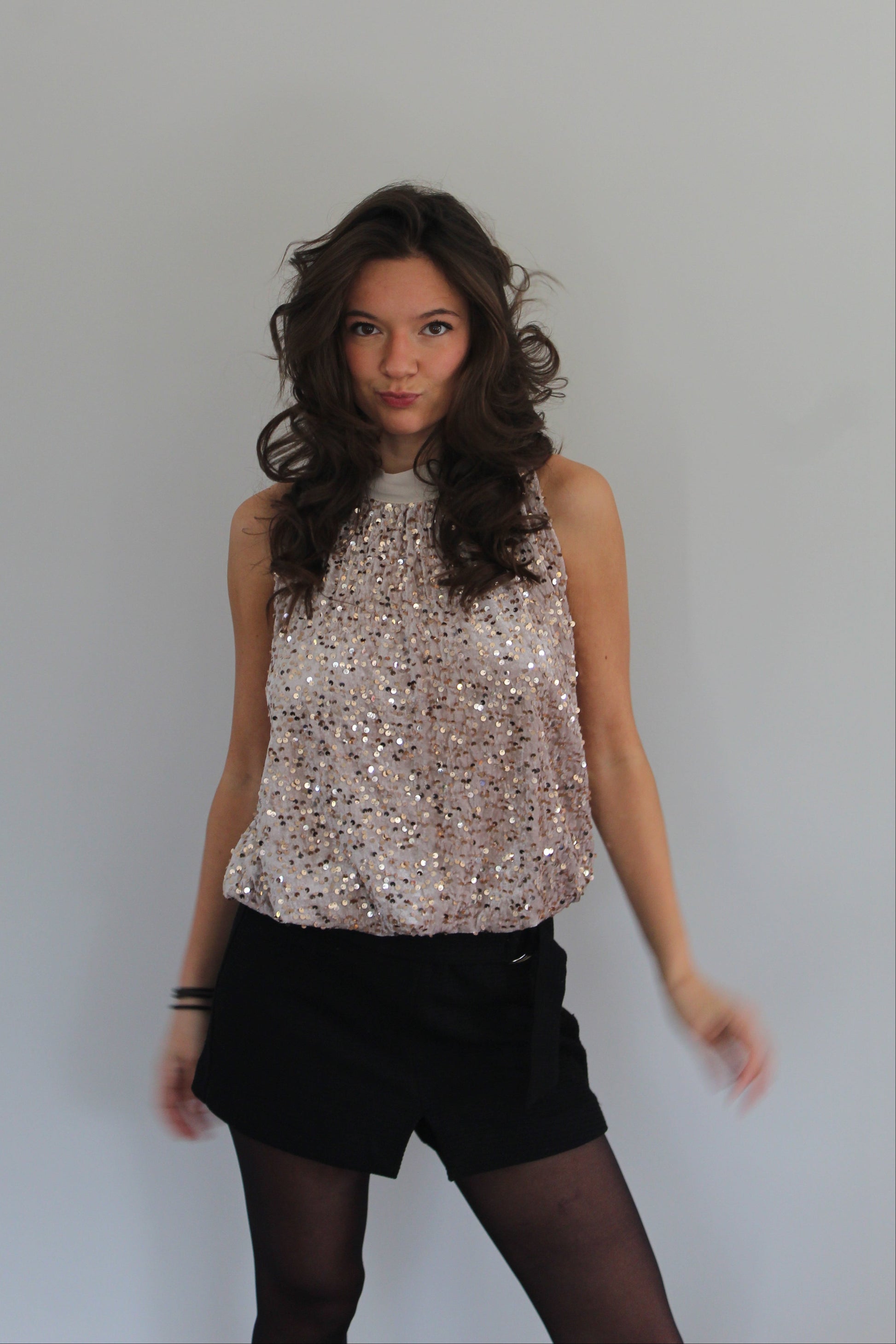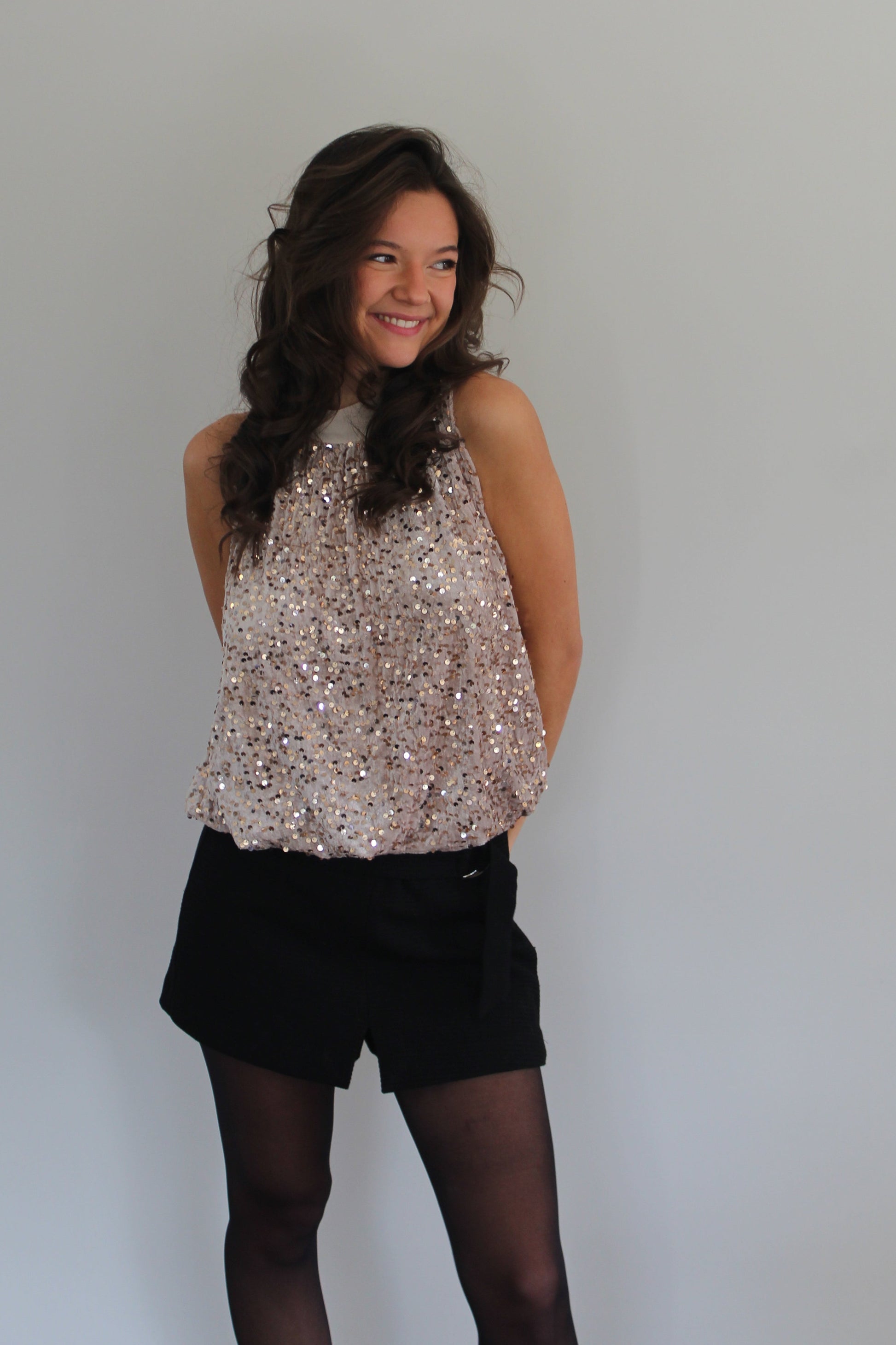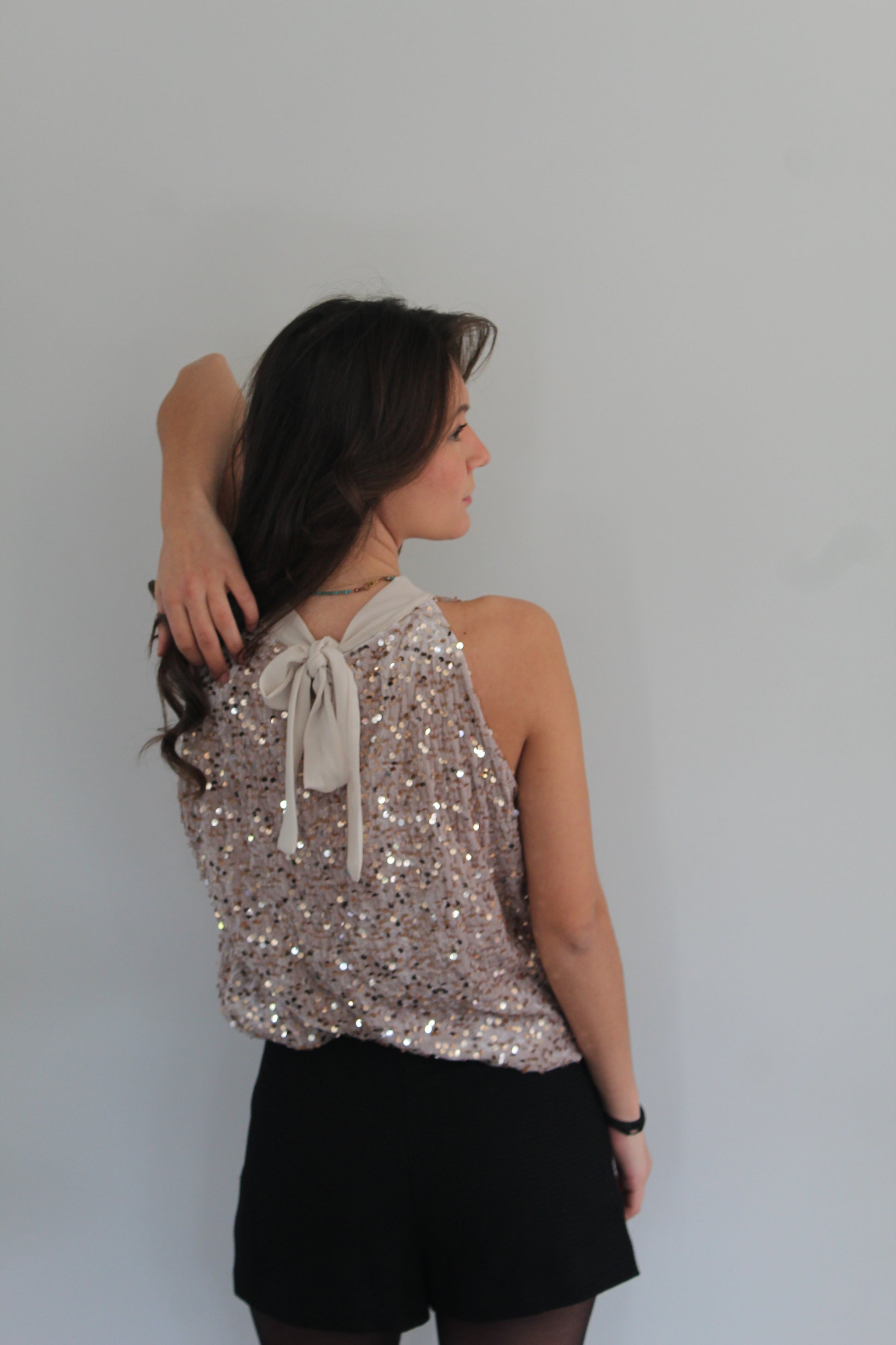 Top à Paillettes. Noeud au Dos & Élégance Scintillante !