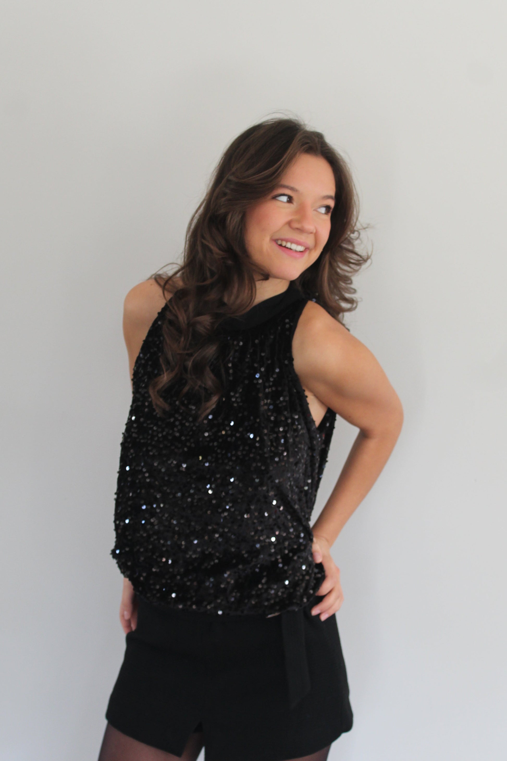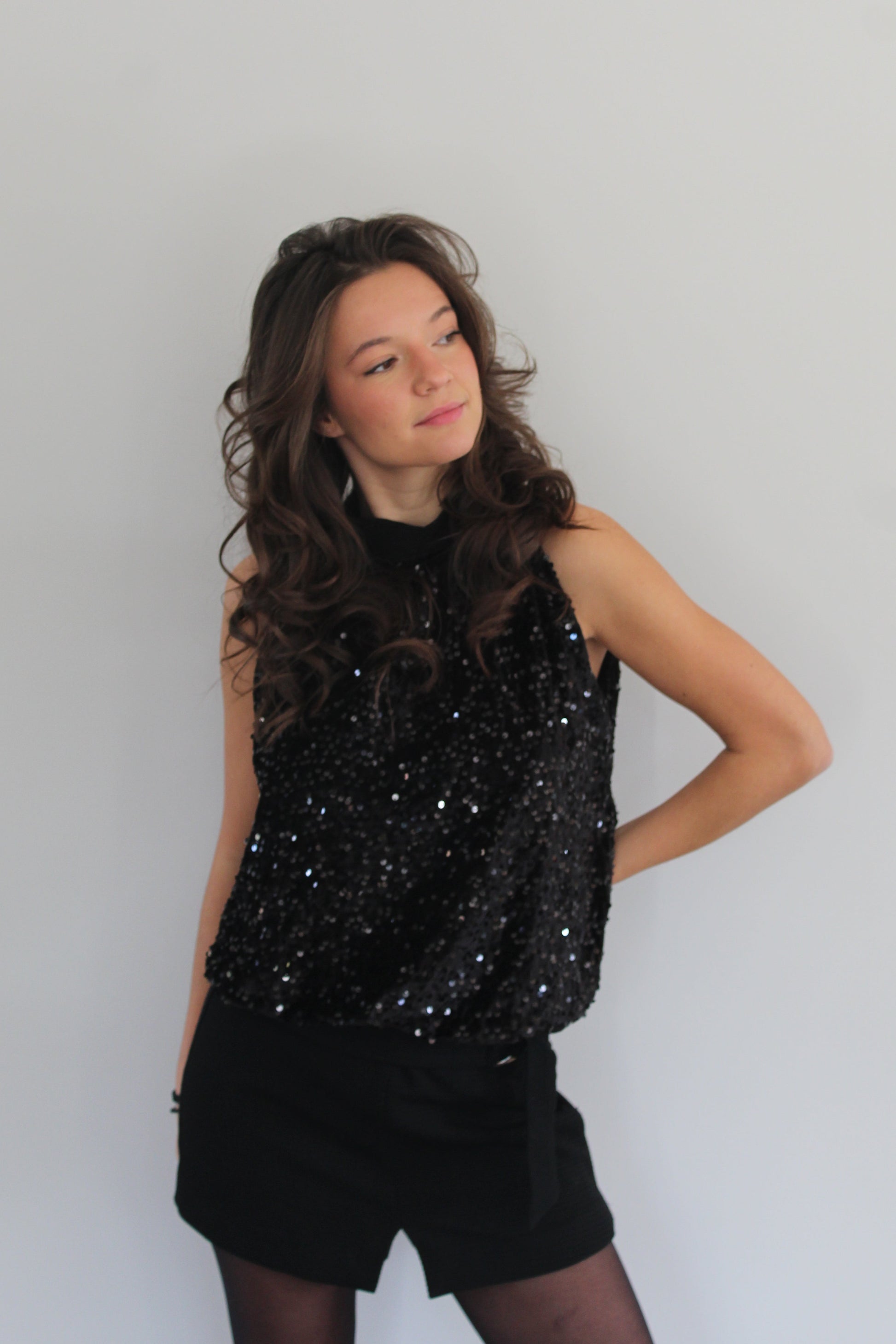Top à Sequins. Noeud au Dos & Élégance Scintillante